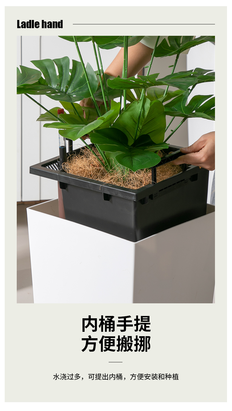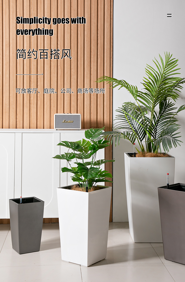 4056 自吸水大號花盆圓口組合烤漆租擺租賃開業大堂懶人花盆