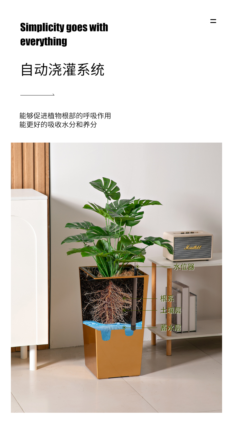 4012 宜植堂自動吸水花盆組合自動澆水高檔烤漆智能花盆
