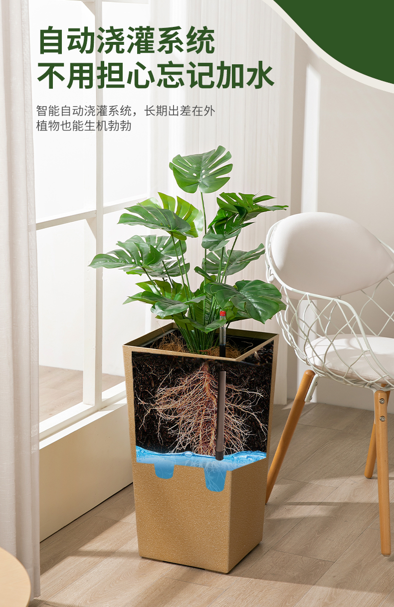 4012 宜植堂自動吸水花盆組合自動澆水高檔烤漆智能花盆