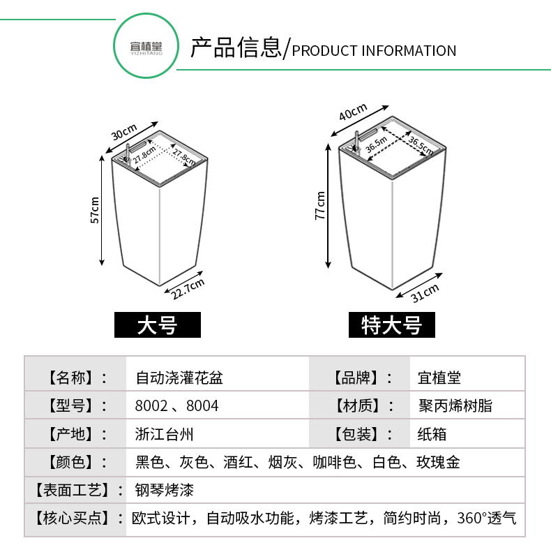 簡約 時尚 美觀的外形可以搭配任何環境空間,成為您家中,辦公室或者花園陽臺移到亮麗風景。現代化的設計締造了花盆和花卉的完美結合戶外使用時,可以去掉底部皮塞通過內盆提手,同尺寸內盆可隨意互換